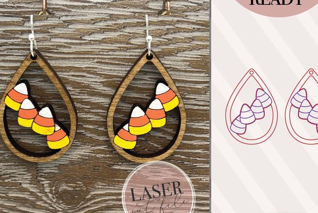 Intra απο ξύλο plywood 3mm-4mm πάχος Σκουλαρίκια λέιζερ Candy Corn Δίασταση 3×3 cm INTRAFABR-73351887