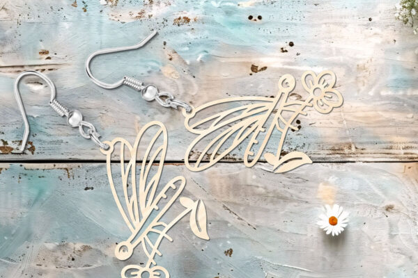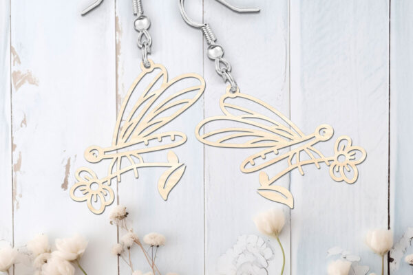 Intra απο ξύλο plywood 3mm-4mm πάχος – Σκουλαρίκια λέιζερ Spring Flower Dragonfly Δίασταση 5×5 cm INTRAFABR-118421344