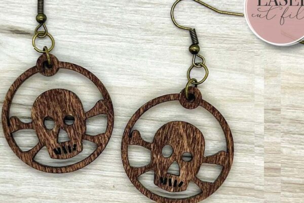 Intra απο ξύλο plywood 3mm-4mm πάχος – Σκουλαρίκια λέιζερ Skull and Bones Δίασταση 5×5 cm INTRAFABR-74147355