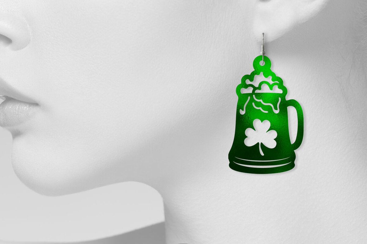 Intra απο ξύλο plywood 3mm-4mm πάχος Σκουλαρίκια με κούπα μπύρας, ημέρα του Αγίου Πατρικίου Δίασταση 3×3 cm INTRAFABR-6916366
