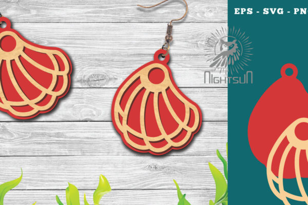 Intra απο ξύλο plywood 3mm-4mm πάχος – Σκουλαρίκια με λέιζερ Sea Shells 7 Δίασταση 5×5 cm INTRAFABR-113272407