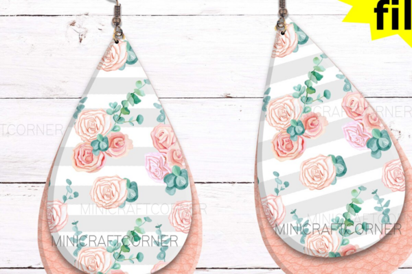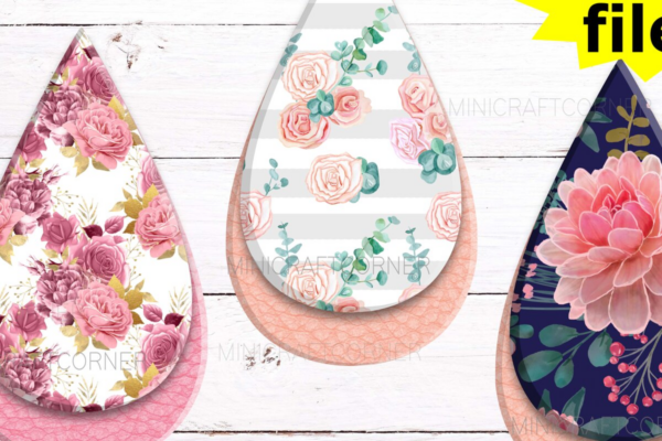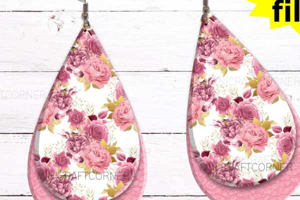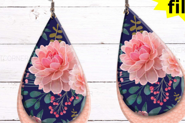 Intra απο ξύλο plywood 3mm-4mm πάχος – Σκουλαρίκια με λουλουδάτο ροζ και ναυτικό και λέιζερ Δίασταση 5×5 cm INTRAFABR-14119332