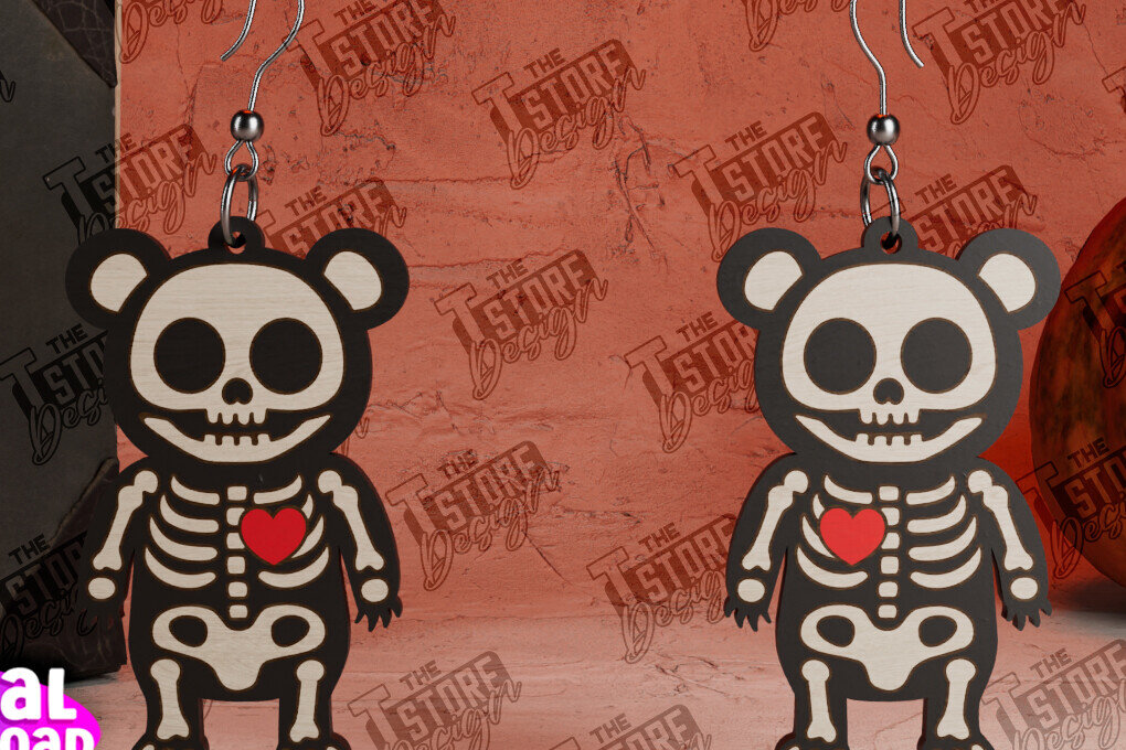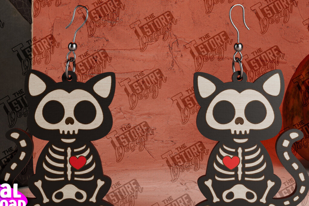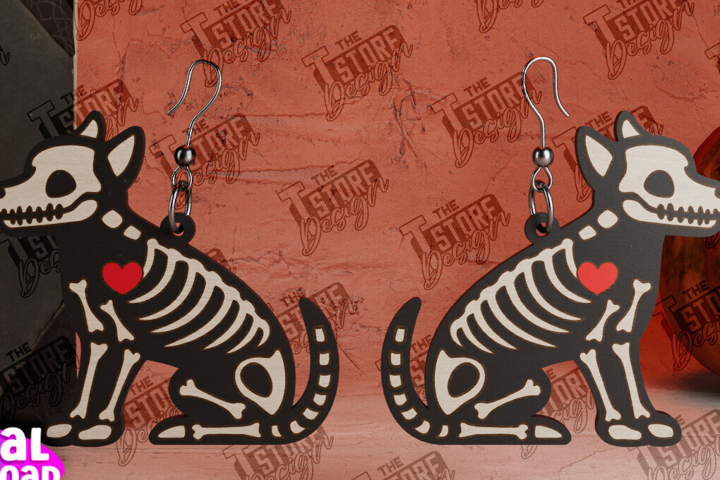 Intra απο ξύλο plywood 3mm-4mm πάχος σκουλαρίκια με σκελετούς ζώων | CNC Δίασταση 3×3 cm INTRAFABR-104428766