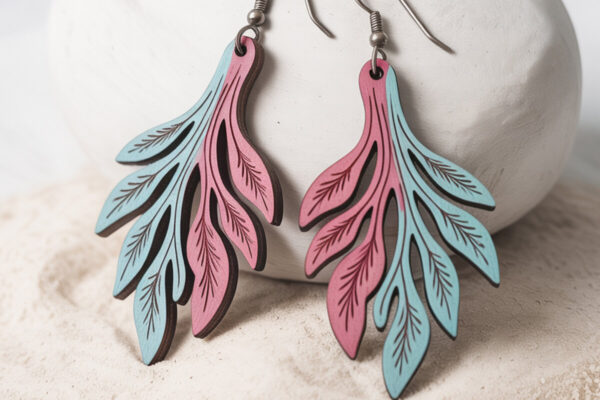 Intra απο ξύλο plywood 3mm-4mm πάχος – Σκουλαρίκια με φύκια Δίασταση 5×5 cm INTRAFABR-121577235