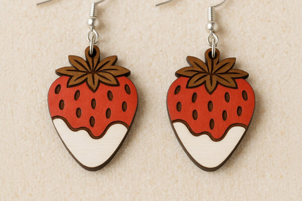 Intra απο ξύλο plywood 3mm-4mm πάχος – Σκουλαρίκια φράουλα Cut Laser Δίασταση 5×5 cm INTRAFABR-120914682