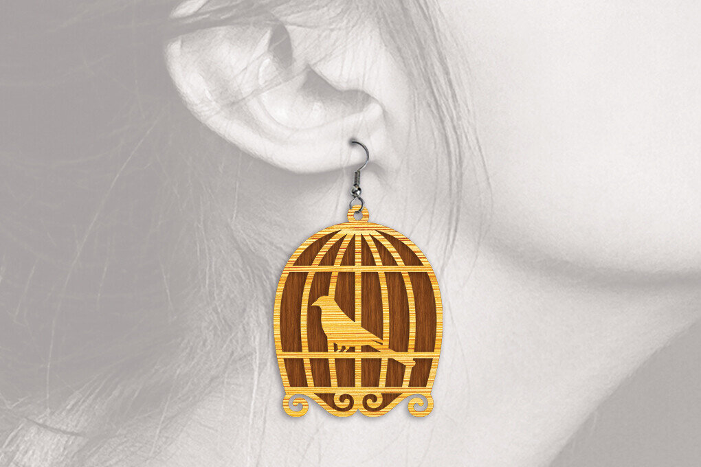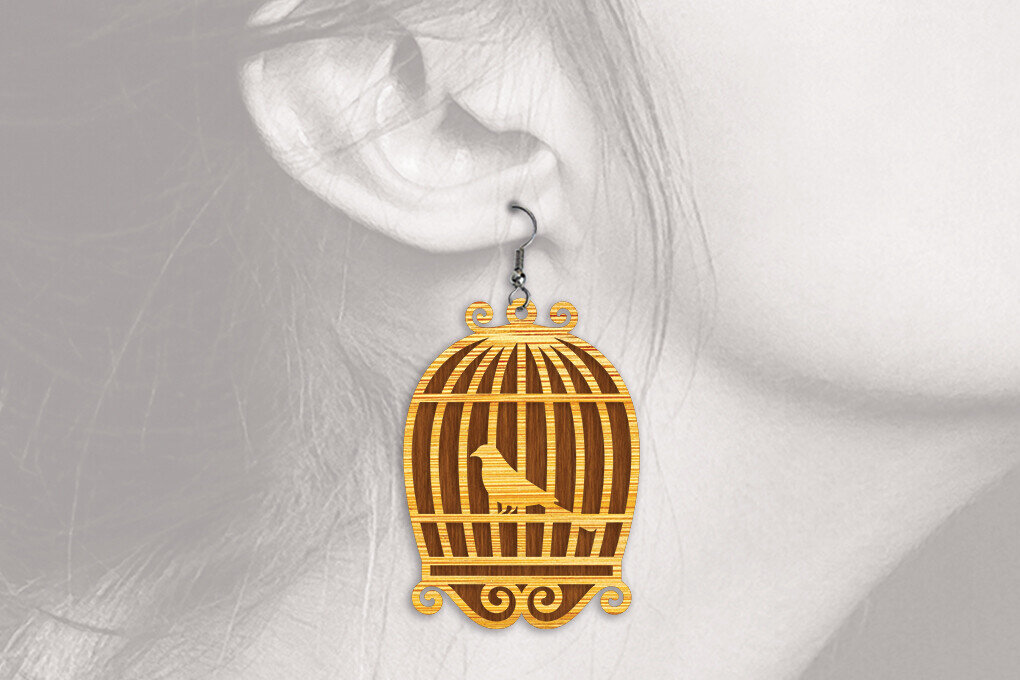 Intra απο ξύλο plywood 3mm-4mm πάχος Σκουλαρίκια Bird Cage – 1 Δίασταση 3×3 cm INTRAFABR-102058238