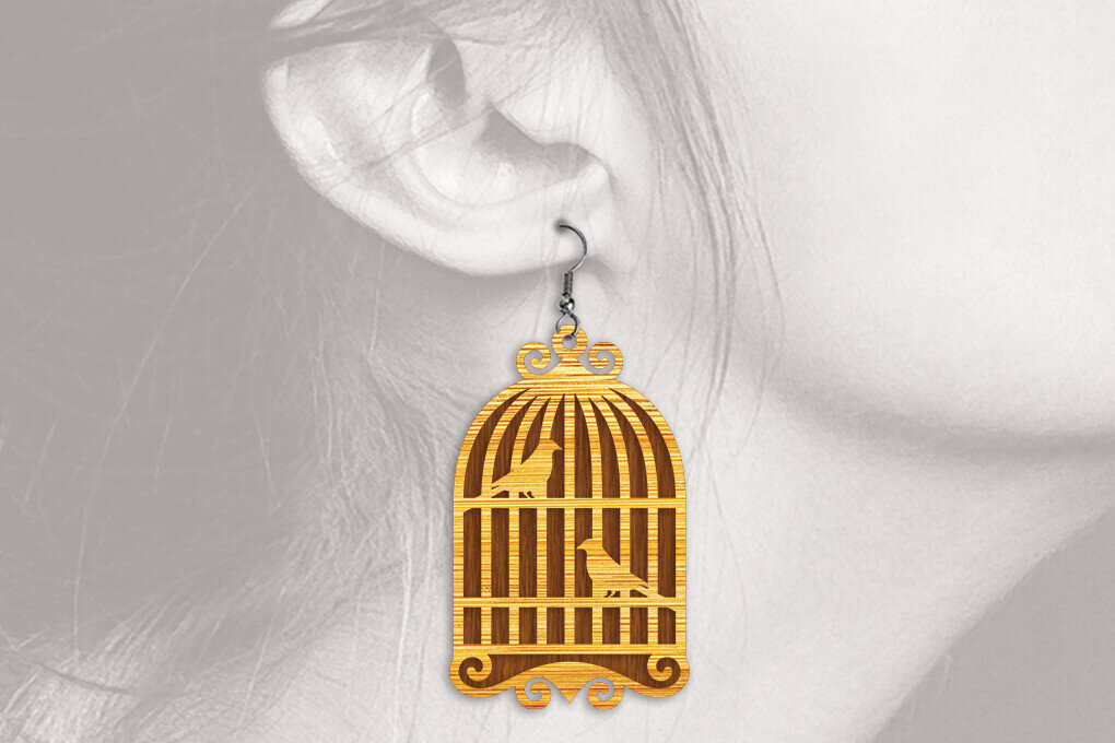 Intra απο ξύλο plywood 3mm-4mm πάχος Σκουλαρίκια Bird Cage – 2 Δίασταση 3×3 cm INTRAFABR-102058496