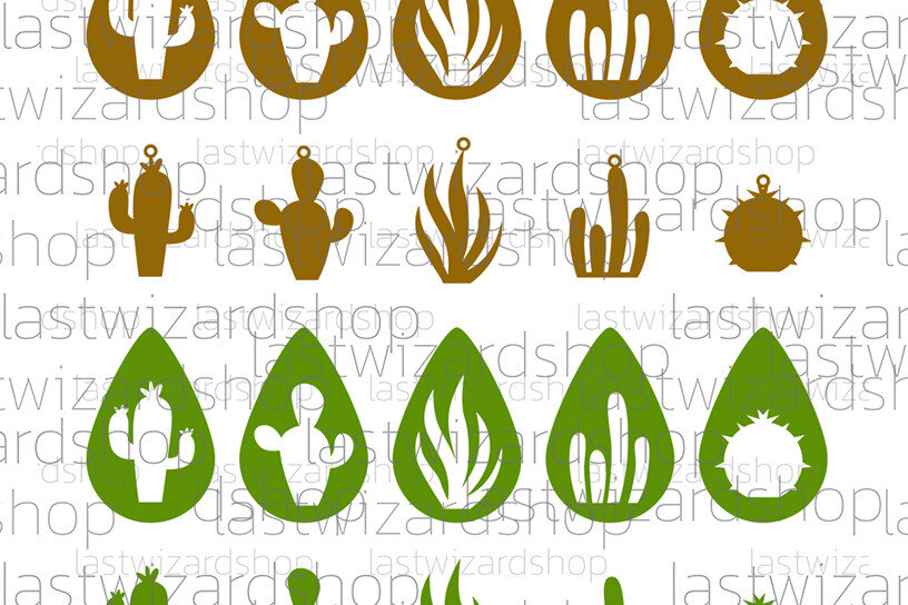 Intra απο ξύλο plywood 3mm-4mm πάχος Σκουλαρίκια Cactus Desert , Faux Leather Δίασταση 3×3 cm INTRAFABR-24969450