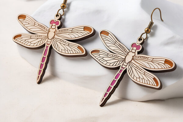 Intra απο ξύλο plywood Χρώμα wenge 3mm-4mm πάχος – Σκουλαρίκια Dragonfly Δίασταση 3×3 cm INTRAFABR-48841525