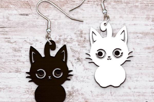 Intra απο ξύλο plywood 3mm-4mm πάχος – Σκουλαρίκια Laser cut. Λέιζερ σιλουέτας γάτας Δίασταση 3×3 cm INTRAFABR-119855435