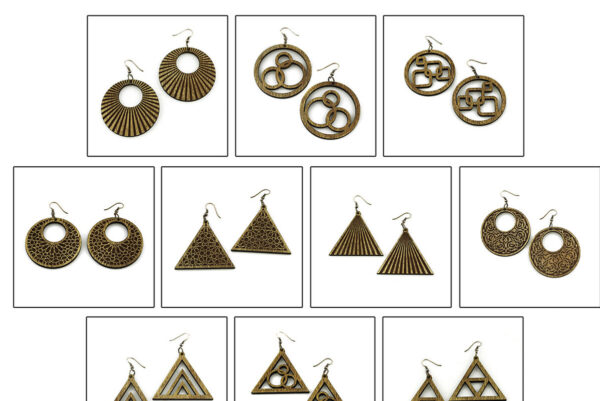 Intra απο ξύλο plywood Χρώμα wenge 3mm-4mm πάχος – Σκουλαρίκια Laser File.10 Σχέδια και βάση Δίασταση 14×15 cm INTRAFABR-114656152