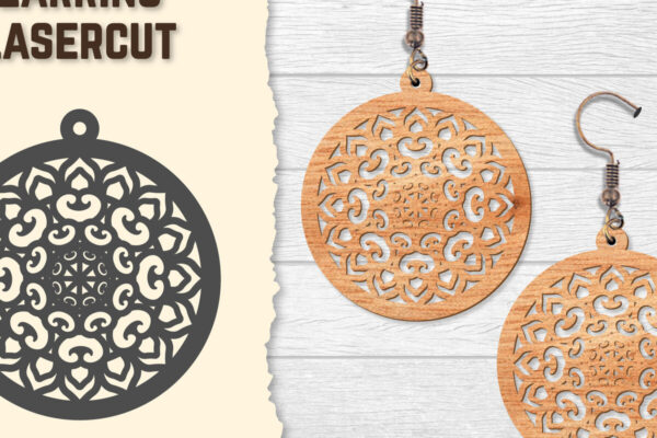 Intra απο ξύλο plywood 3mm-4mm πάχος – Σκουλαρίκια Mandala Lasercut BNDLES Δίασταση 3×3 cm INTRAFABR-120627174