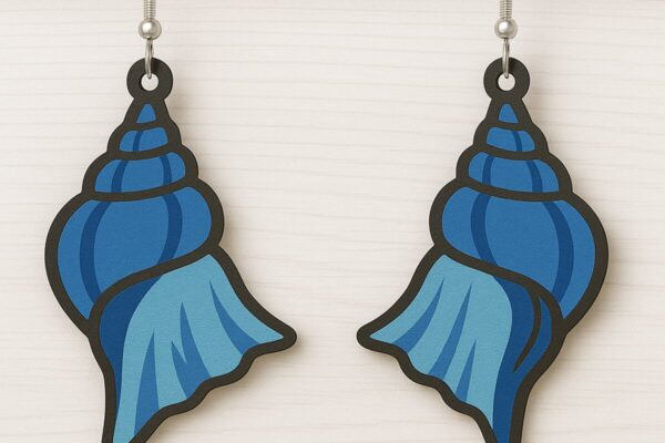 Intra απο ξύλο plywood 3mm-4mm πάχος – Σκουλαρίκια Ocean Blue Shell Δίασταση 5×5 cm INTRAFABR-123080609