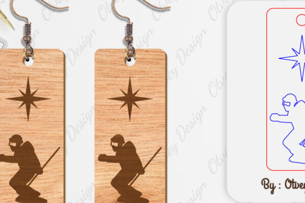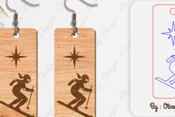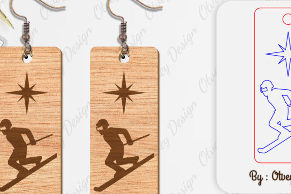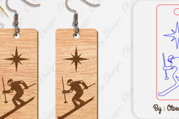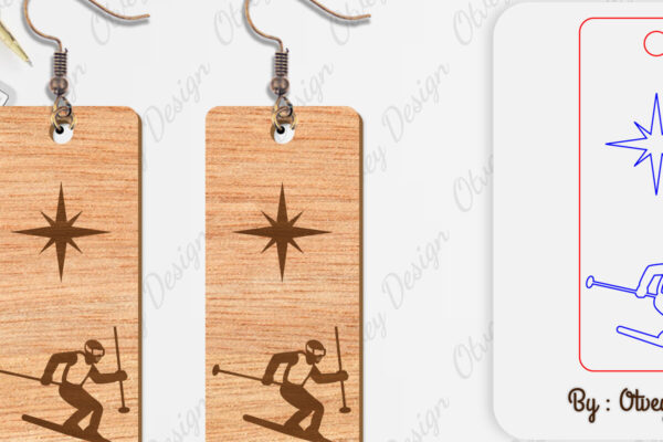Intra απο ξύλο plywood 3mm-4mm πάχος – Σκουλαρίκια Ski Scene Lasercut Δίασταση 5×5 cm INTRAFABR-112077662