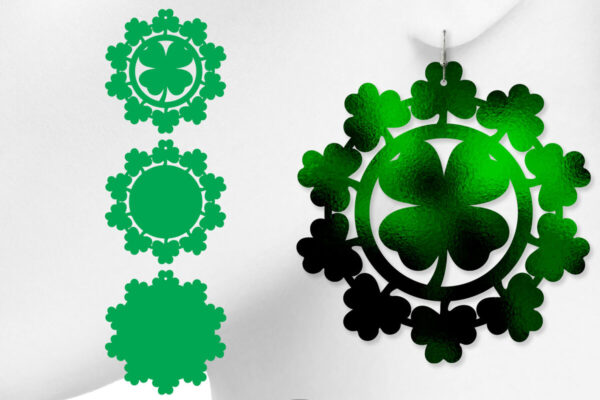 Intra απο ξύλο plywood 3mm-4mm πάχος – Σκουλαρίκια St Patrick’s Day, 4 φύλλα τριφύλλι Δίασταση 5×5 cm INTRAFABR-6890458