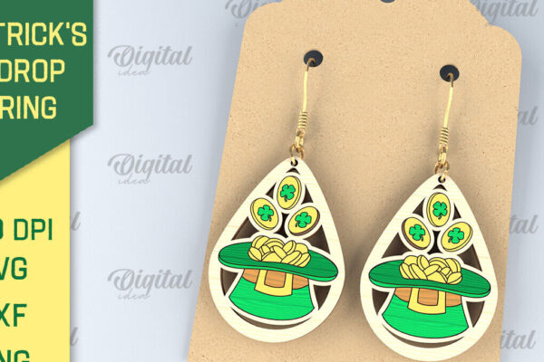 Intra απο ξύλο plywood 3mm-4mm πάχος – Σκουλαρίκια St. Patrick’s Day Drop Lasercut Δίασταση 5×5 cm INTRAFABR-87838365