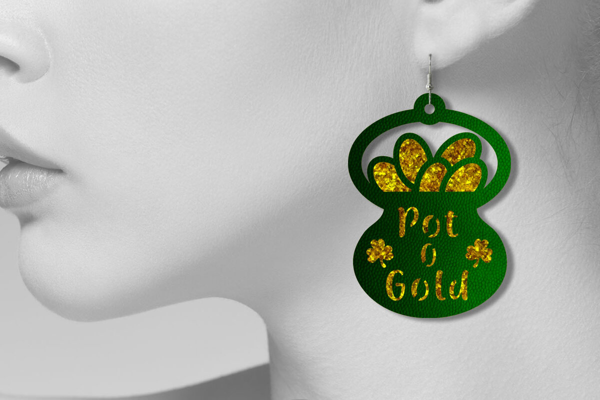 Intra απο ξύλο plywood 3mm-4mm πάχος – Σκουλαρίκια St Patrick’s Day, Pot of Gold Δίασταση 5×5 cm INTRAFABR-6903138