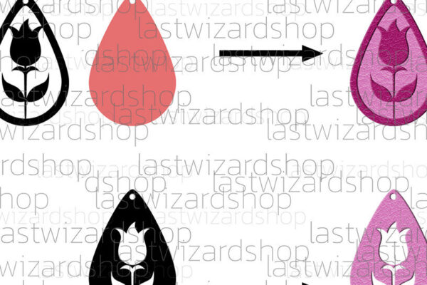 Intra απο ξύλο plywood 3mm-4mm πάχος – Σκουλαρίκια Tulip Flower, Faux Leather Δίασταση 5×5 cm INTRAFABR-25318681