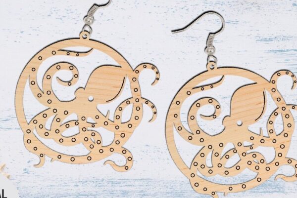 Intra απο ξύλο plywood 3mm-4mm πάχος – Σκουλαρίκι κομμένο με λέιζερ, σκουλαρίκι χταπόδι Δίασταση 3×3 cm INTRAFABR-70546432