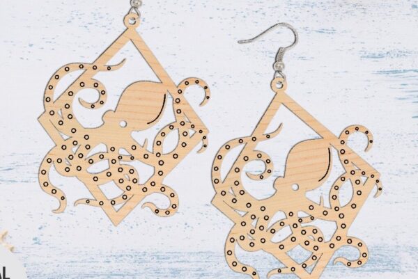 Intra απο ξύλο plywood 3mm-4mm πάχος – Σκουλαρίκι κομμένο με λέιζερ, σκουλαρίκι χταπόδι Δίασταση 3×3 cm INTRAFABR-70546566