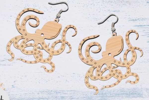 Intra απο ξύλο plywood 3mm-4mm πάχος – Σκουλαρίκι κομμένο με λέιζερ, σκουλαρίκι χταπόδι Δίασταση 3×3 cm INTRAFABR-70545755