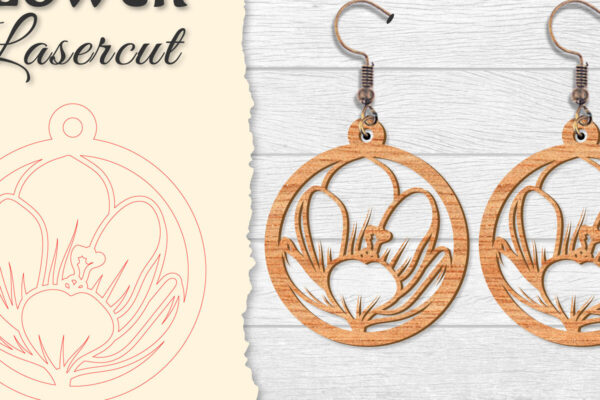 Intra απο ξύλο plywood 3mm-4mm πάχος – Σκουλαρίκι Flower cut Laser Δίασταση 3×3 cm INTRAFABR-122656044
