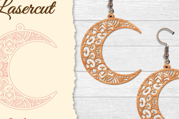 Intra απο ξύλο plywood 3mm-4mm πάχος – Σκουλαρίκι Moon Mandala Lasercut Δίασταση 3×3 cm INTRAFABR-121492736