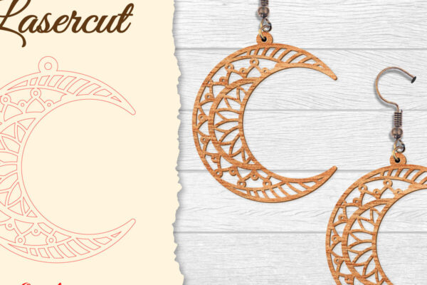 Intra απο ξύλο plywood 3mm-4mm πάχος – Σκουλαρίκι Moon Mandala Lasercut Δίασταση 3×3 cm INTRAFABR-121492718