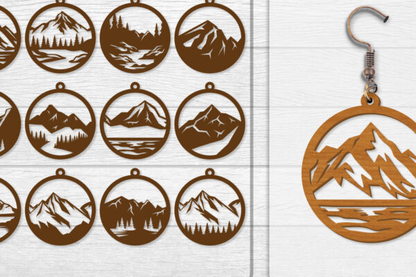 Intra απο ξύλο plywood 3mm-4mm πάχος – Σκουλαρίκι Mountain Lasercut BNDLE 12 Δίασταση 3×3 cm INTRAFABR-114653691