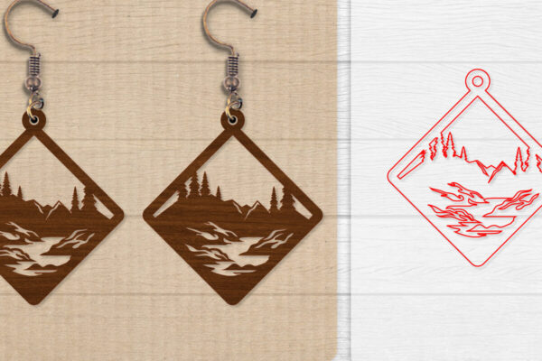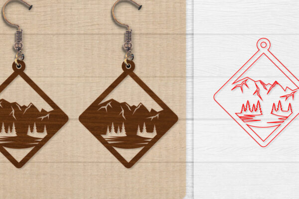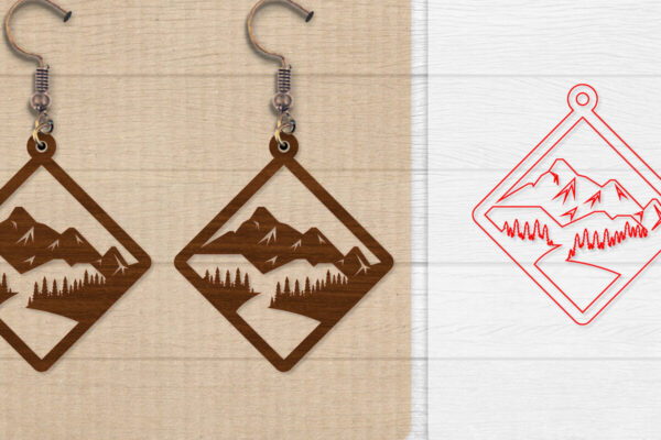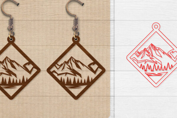 Intra απο ξύλο plywood Χρώμα wenge 3mm-4mm πάχος – Σκουλαρίκι Mountain Lasercut BNDLE 12 Δίασταση 3×3 cm INTRAFABR-102035313