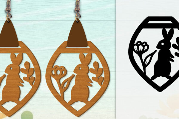 Intra απο ξύλο plywood Χρώμα wenge 3mm-4mm πάχος – Σκουλαρίκι Rabbit Lasercut | Καλό Πάσχα Δίασταση 3×3 cm INTRAFABR-102035127