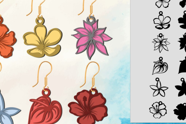 Intra απο ξύλο plywood 3mm-4mm πάχος – Σκουλαρίκι Tropical Flower, Hawaii Δίασταση 5×5 cm INTRAFABR-69227502