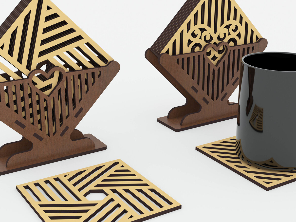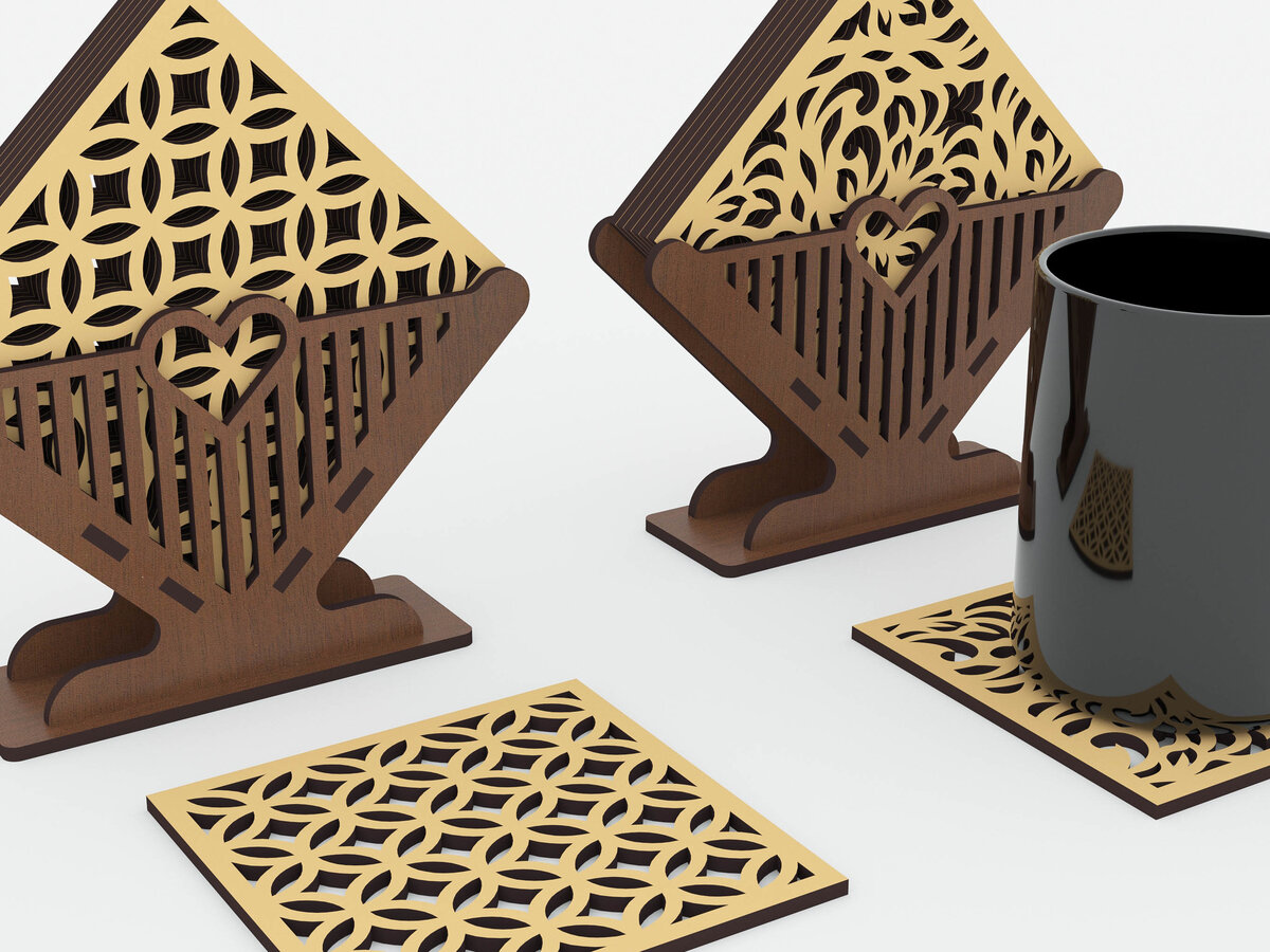Intra απο ξύλο plywood 3mm-4mm πάχος Σουβέρ με 4 διακοσμητικό σχέδιο Δίασταση 15×15 cm INTRAFABR-72656403