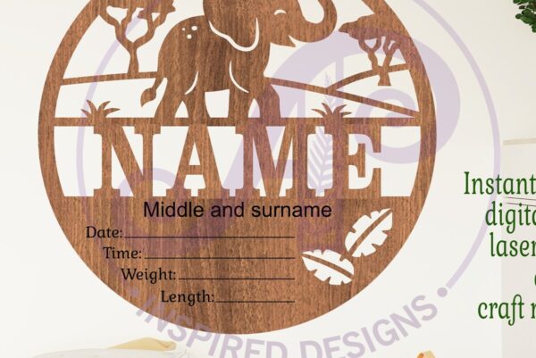 Intra απο ξύλο plywood 3mm-4mm πάχος – Στατιστικά νεογέννητου μωρού ελέφαντα, σημάδι γέννησης Δίασταση 30×20 cm INTRAFABR-108979486