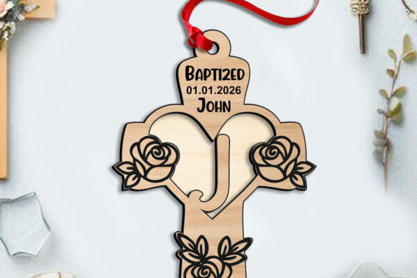 Intra απο ξύλο plywood 3mm-4mm πάχος – Σταυρός τριαντάφυλλο γράμμα J στολίδι λέιζερ δώρου Δίασταση 6×6 cm INTRAFABR-116753096