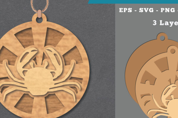 Intra απο ξύλο plywood 3mm-4mm πάχος – Στολίδι κοπής με λέιζερ καβουριών 1 Δίασταση 6×6 cm INTRAFABR-112341722
