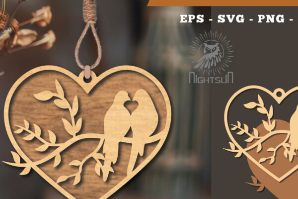 Intra απο ξύλο plywood Χρώμα wenge 3mm-4mm πάχος – Στολίδι κοπής με λέιζερ Couple Birds 1 Δίασταση 6×6 cm INTRAFABR-29626588