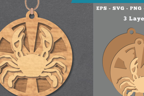 Intra απο ξύλο plywood Χρώμα wenge 3mm-4mm πάχος – Στολίδι κοπής με λέιζερ καβουριών 3 Δίασταση 6×6 cm INTRAFABR-99708427