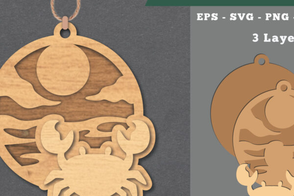 Intra απο ξύλο plywood Χρώμα wenge 3mm-4mm πάχος – Στολίδι κοπής με λέιζερ καβούρι Δίασταση 6×6 cm INTRAFABR-99708492