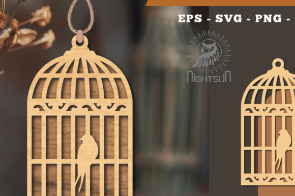 Intra απο ξύλο plywood 3mm-4mm πάχος Στολίδι κοπής με λέιζερ Bird in a Cage 4 Δίασταση 8×8 cm INTRAFABR-114139471