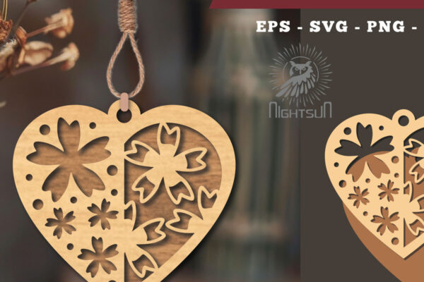 Intra απο ξύλο plywood 3mm-4mm πάχος – Στολίδι με κομμένα λέιζερ καρδιών λουλουδιών 3 Δίασταση 6×6 cm INTRAFABR-114305766