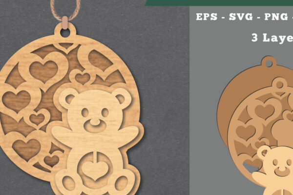 Intra απο ξύλο plywood 3mm-4mm πάχος – Στολίδι με κομμένο αρκουδάκι Δίασταση 20×20 cm INTRAFABR-112070097