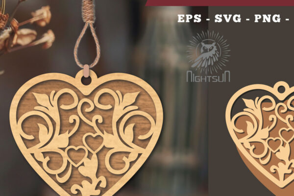 Intra απο ξύλο plywood 3mm-4mm πάχος – Στολίδι με φλοράλ καρδιές κοπής με λέιζερ 6 Δίασταση 6×6 cm INTRAFABR-114305667