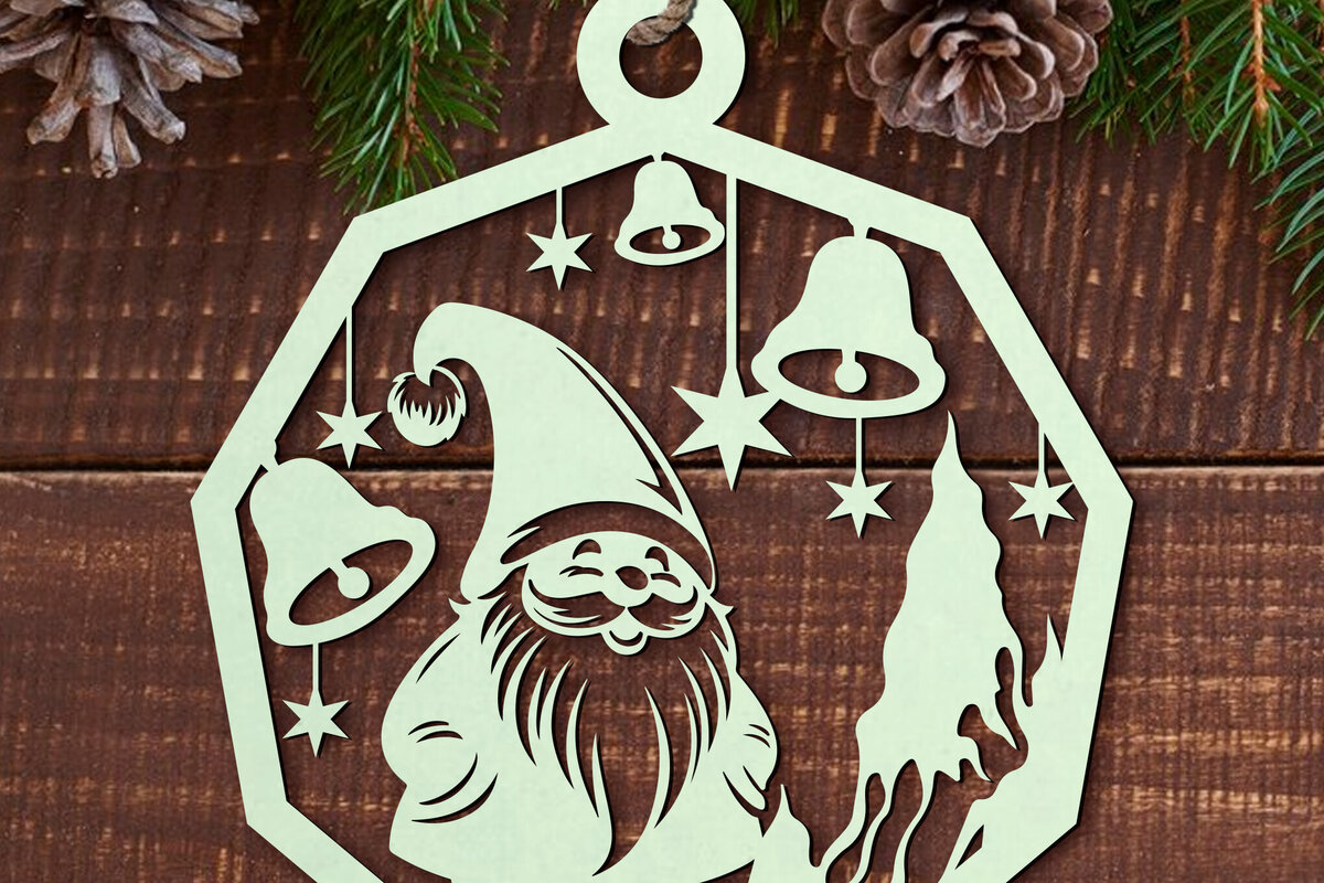 Intra απο ξύλο plywood 3mm-4mm πάχος στολίδι με χριστουγεννιάτικο Gnome Δίασταση 8×8 cm INTRAFABR-110121237