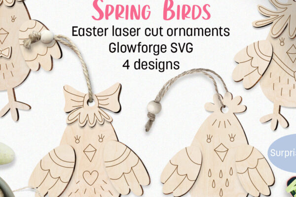 Intra απο ξύλο plywood 3mm-4mm πάχος – Στολίδι Spring Bird Glowforge Laser Δίασταση 20×20 cm INTRAFABR-58104650