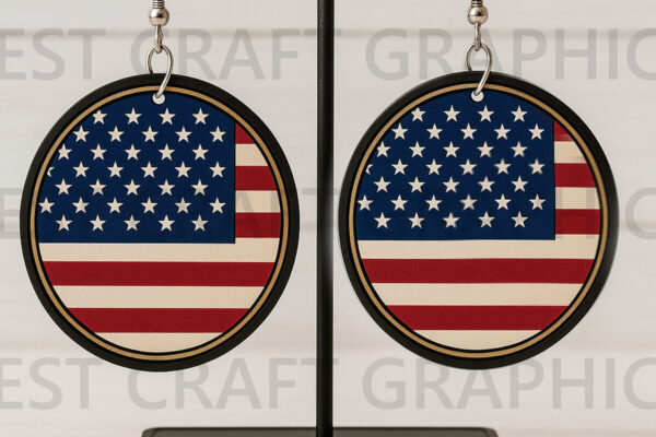 Intra απο ξύλο plywood 3mm-4mm πάχος – Στρογγυλά σκουλαρίκια αμερικανικής σημαίας Δίασταση 5×5 cm INTRAFABR-122737633