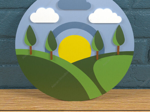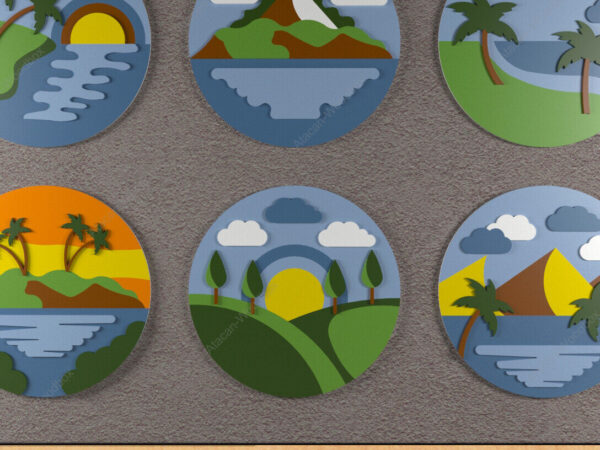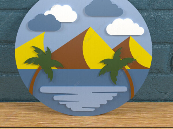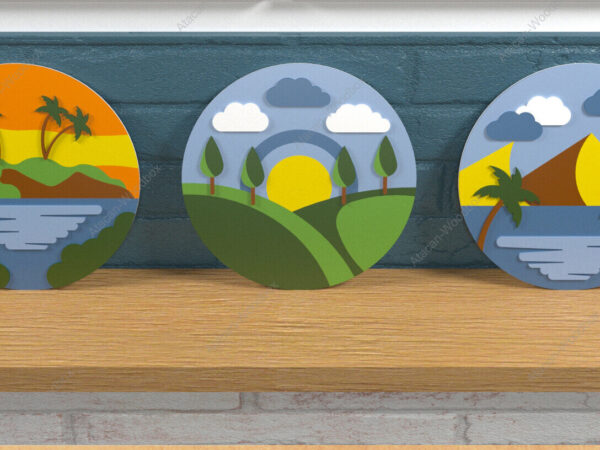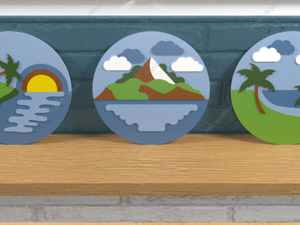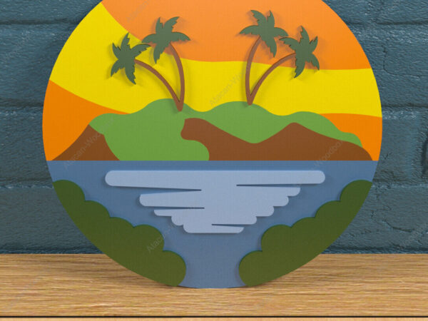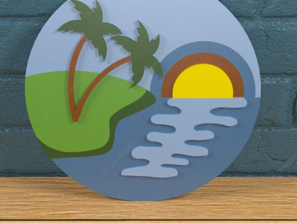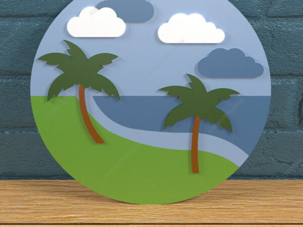 Intra απο ξύλο plywood 3mm-4mm πάχος – Στρογγυλή κρεμάστρα τοπίων διακοπών φοίνικα Δίασταση 20×20 cm INTRAFABR-82780742