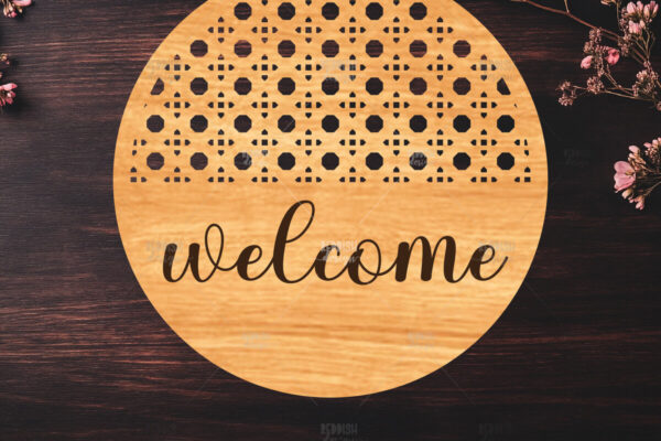Intra απο ξύλο plywood 3mm-4mm πάχος – Στρογγυλή πινακίδα καλωσορίσματος Rattan Cut Laser Δίασταση 20×20 cm INTRAFABR-123487165