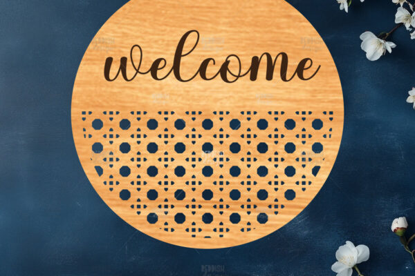 Intra απο ξύλο plywood 3mm-4mm πάχος – Στρογγυλή πινακίδα καλωσορίσματος Rattan Cut Laser Δίασταση 20×20 cm INTRAFABR-123487175