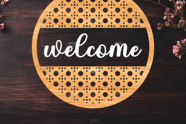 Intra απο ξύλο plywood 3mm-4mm πάχος – Στρογγυλή πινακίδα καλωσορίσματος Rattan Cut Laser Δίασταση 20×20 cm INTRAFABR-123487183